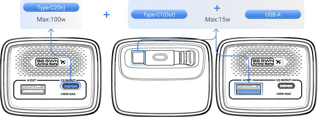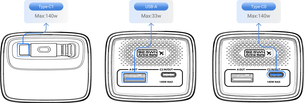 | Any (e.g., Home screen) | Double-click | Toggle Low-current Mode (USB-A port discharges at 5V for 2 hours). Double-click again to exit. |
